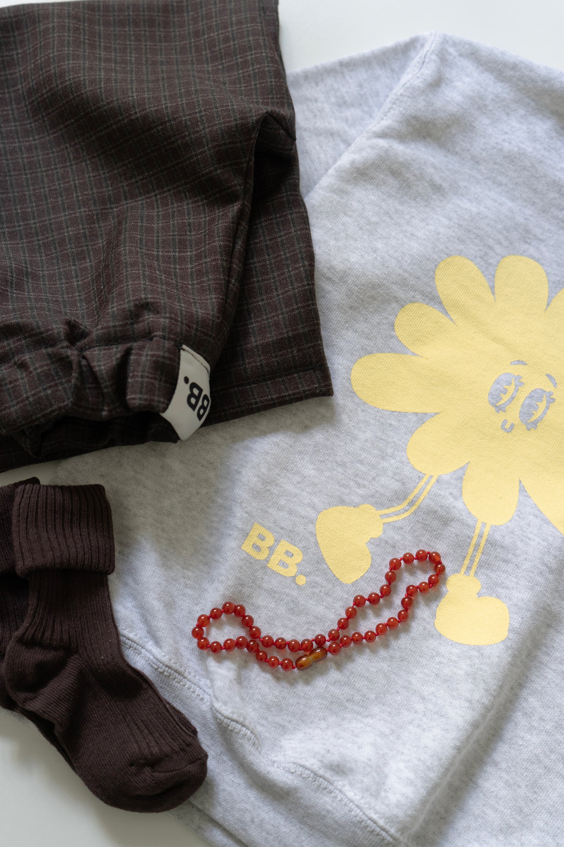Vores Deadstock-bukser er designet med bevægelse og komfort i fokus. Syet i de blødeste deadstock tekstiler fra Italien. Størrelserne er udviklet med et bredere spænd, så bukserne kan vokse med barnet – først med opsmøg til de kortere ben, og siden foldes ud.