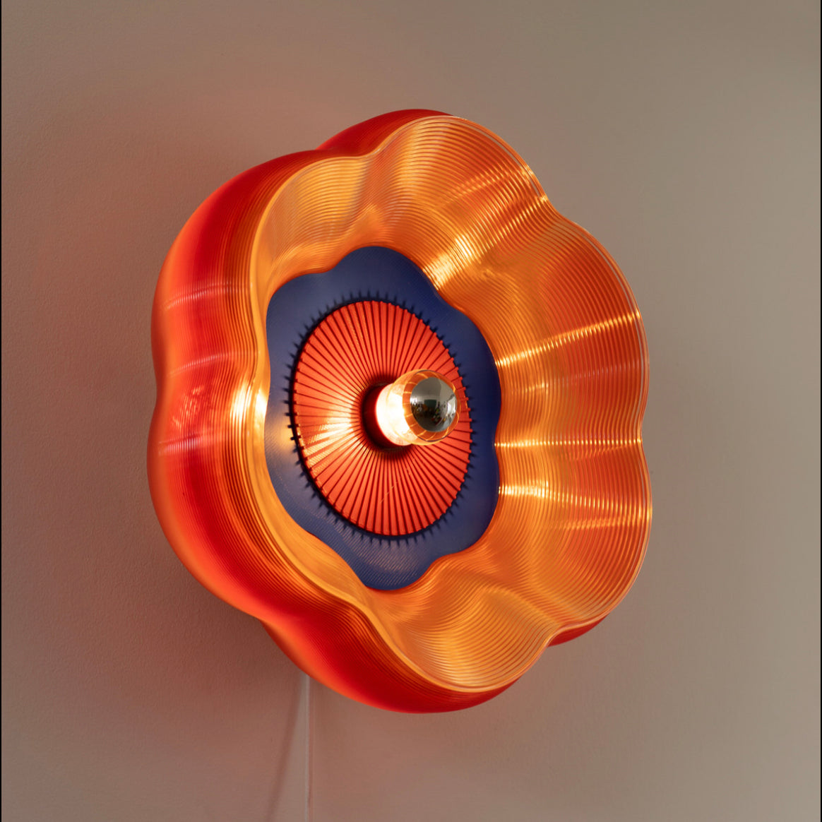 FLWR-lampen er 3D-printet i PLA – en bioplast baseret på vedvarende ressourcer som majsstivelse. Den blomsterlignende form kaster et blødt, kunstnerisk lys og bliver et poetisk og sanseligt element i ethvert børneværelse.