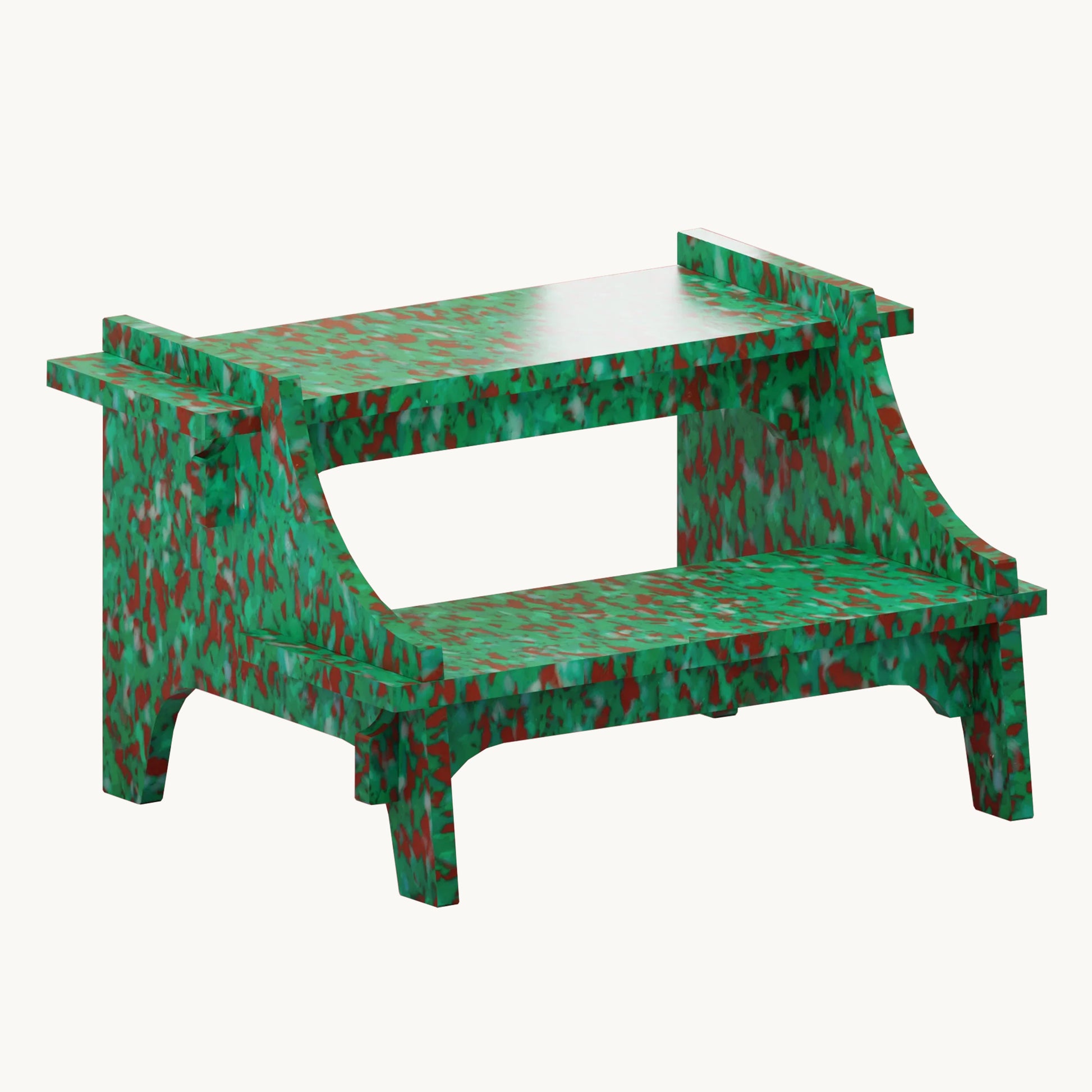 Skamlen er produceret i 100 % genanvendt plast (HDPE) og svarer til ca. 55 tomme vaskemiddelflasker – og når du ikke længere har brug for den, kan den både gives videre eller returneres via Minimono’s end-of-life garanti. Overfladen har en rå, industriel tekstur, og mindre mærker og farveforskelle kan forekomme – det er en del af charmen ved genbrug.