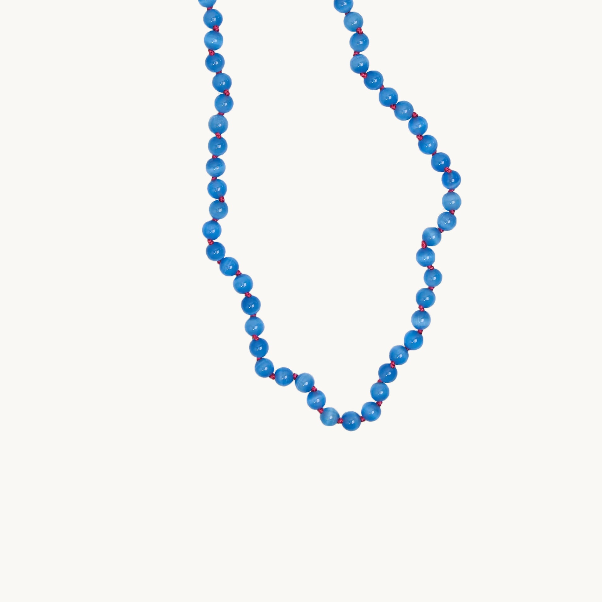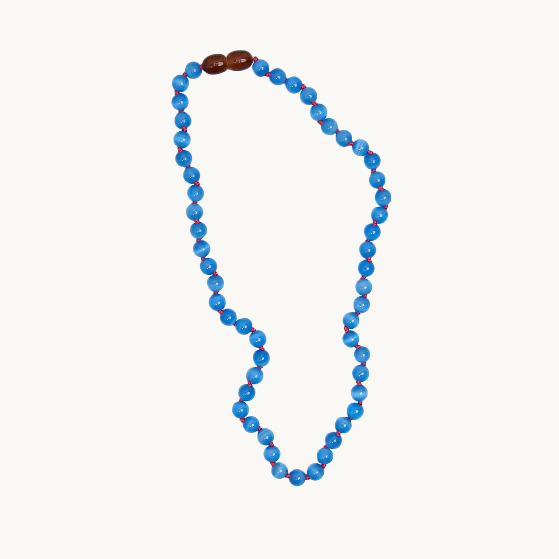 Perler af smuk blå kattetigerøje/kvarts (plus sikkerhedslås)