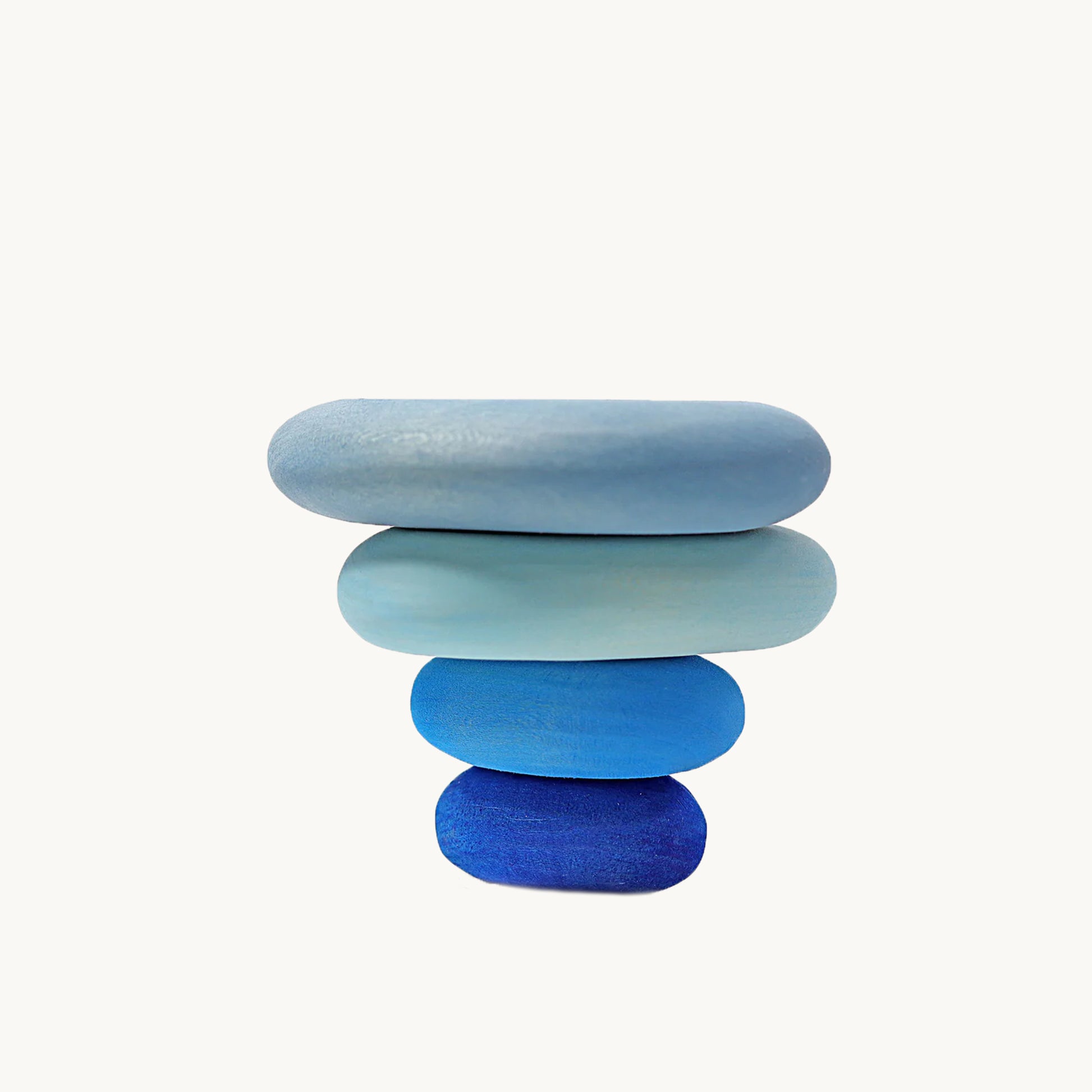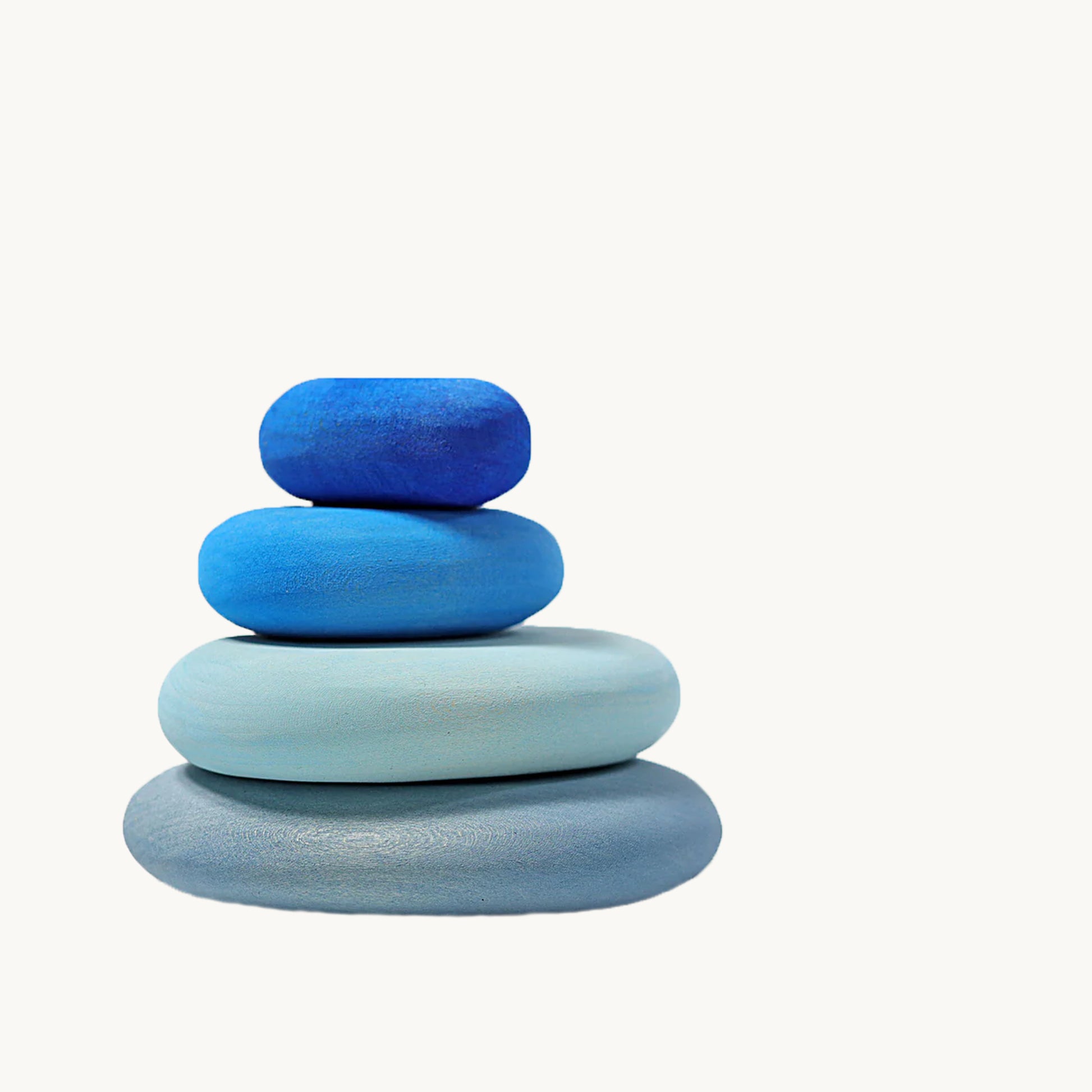 Hver sten måler ca. 7,5 × 7,5 × 2 cm – en god størrelse for små hænder. De kan bruges til at stable, balancere eller bygge med og passer lige så fint i leg som i dekorative opstillinger.