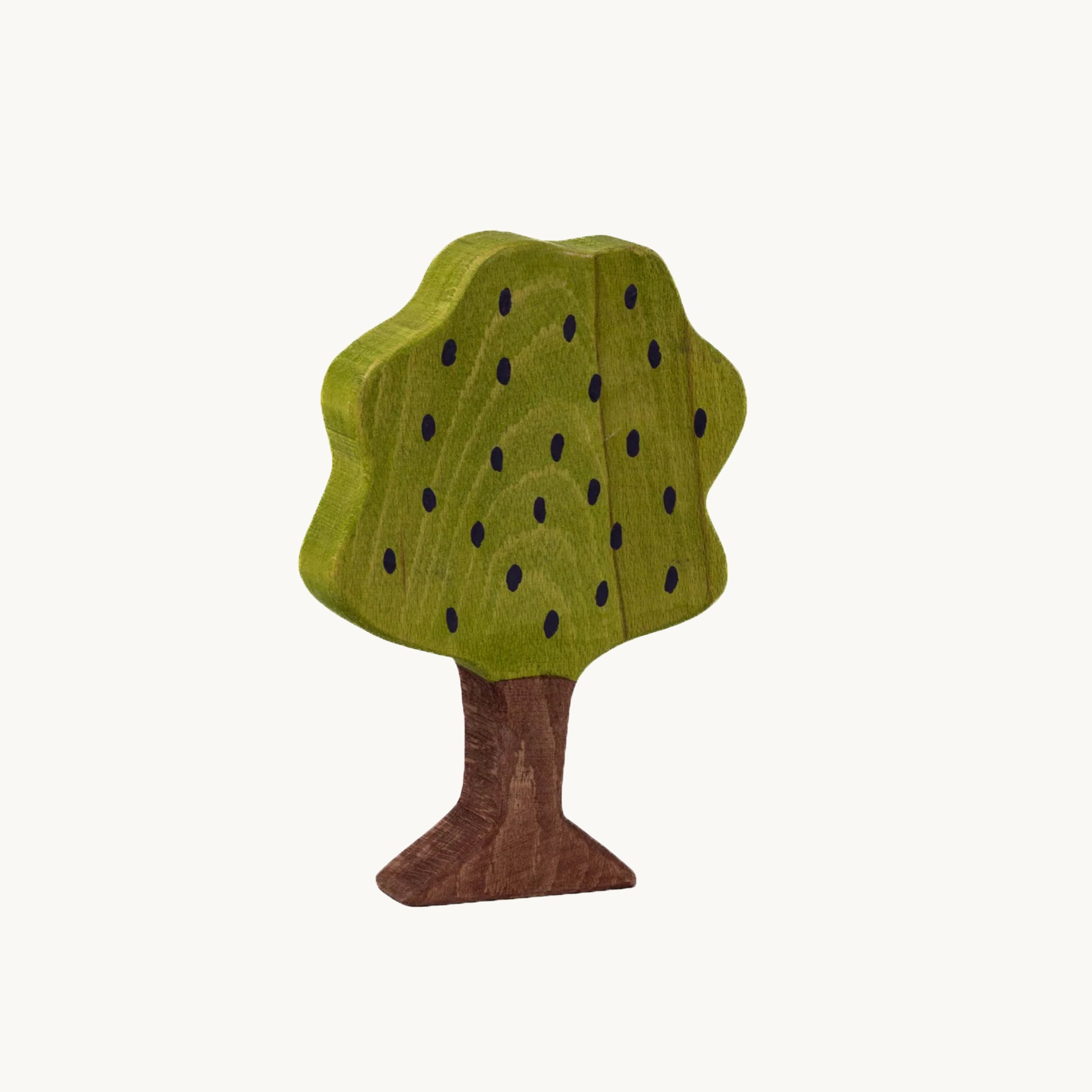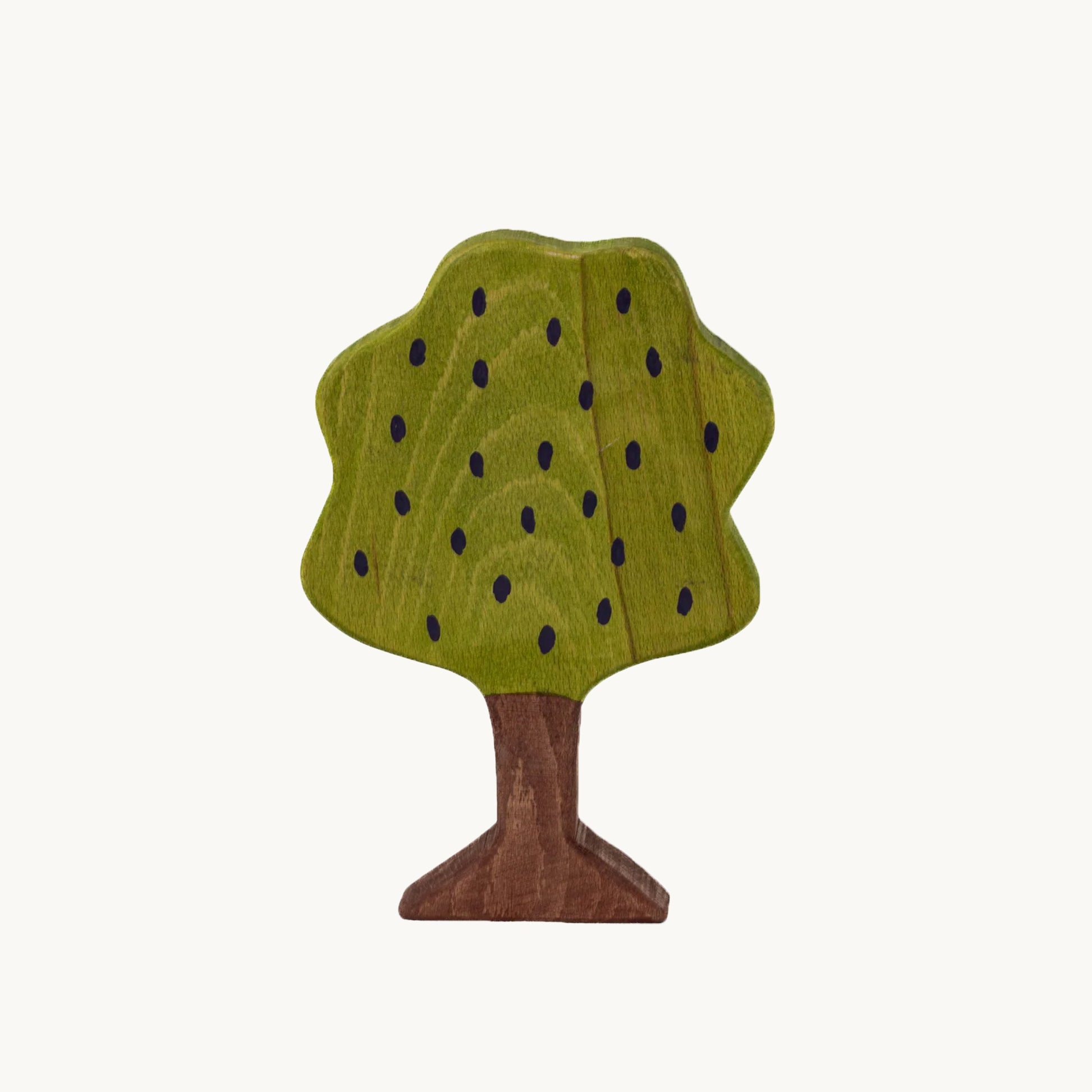 Disse små træer og buske er som skovens stille åndedrag i miniature. Skåret i bøgetræ, farvet med milde, vandbaserede farver og nænsomt olieret med naturlige olier, bringer de en poetisk ro ind i både leg og indretning. Formen er enkel, men udtryksfuld – og skabt med øje for det æstetiske og det naturlige.